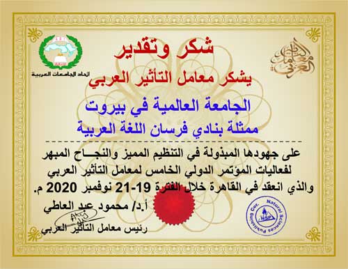 وسط إشادة لافتة من الحضور ووصفه "بالمؤتمر التاريخي" اختتمت في القاهرة فعاليات المؤتمر السنوي الخامس لمعامل التأثير العربي، الذي انعقد في مقر اتحاد الآثاريين العرب في مدينة الشيخ زايد خلال الفترة 19-21/ 11/ 2020 برعاية الأمين العام لاتحاد الجامعات العربية معالي الأستاذ الدكتور عمرو عزت سلامة، وحضور ومشاركة نخبة من الشخصيات الرسمية ضمت عددا من رؤساء الجامعات المصرية والعربية وكوكبة من الخبراء الأكاديميين والعلماء والباحثين العرب يتقدمهم رئيس وزراء مصر الأسبق معالي الأستاذ الدكتور عصام شرف