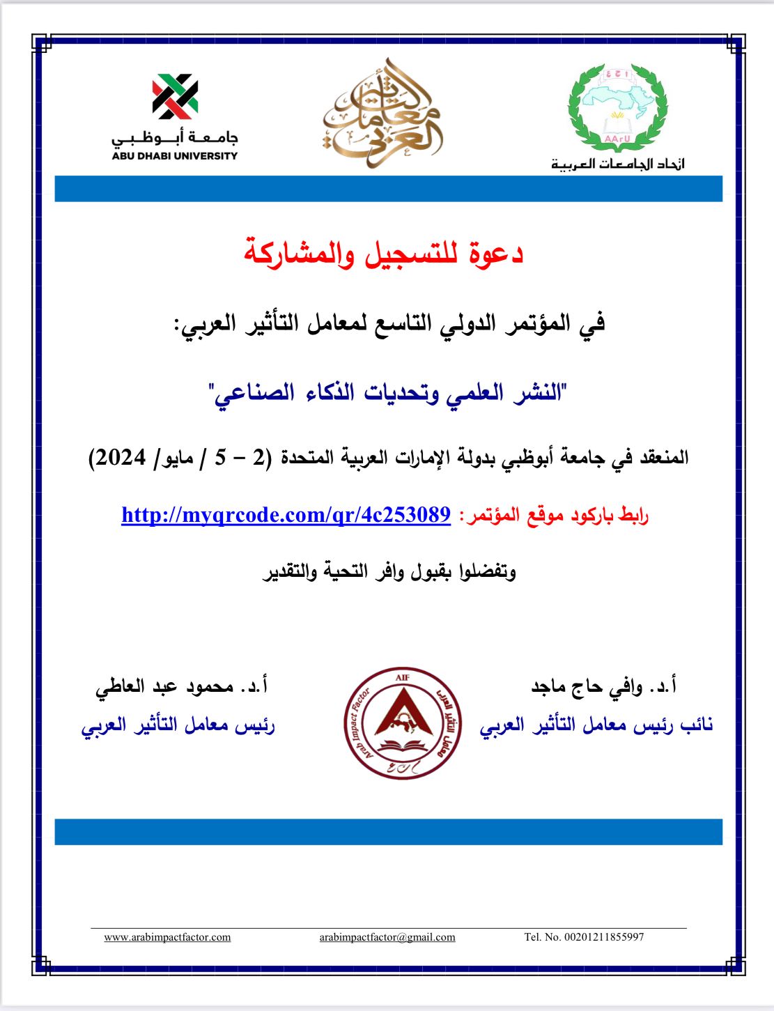 برعاية وحضور الأمين العام لاتحاد الجامعات العربية نجاح فعاليات المؤتمر الدولي التاسع لمُعامل التأثير العربي الذي أقيم في...Posted by فرسان اللغة العربية - الجامعة العالمية on Sunday, May 12, 2024